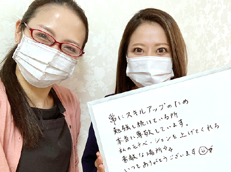 常にスキルアップのため勉強し続けている所、本当に尊敬しています。私のモチベーションを上げてくれる素敵な場所。いつもありがとうございます。