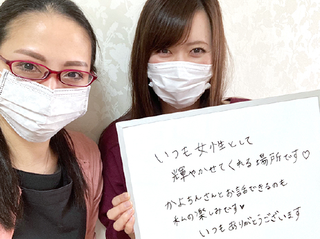 いつも女性として輝かせてくれる場所です♡かよさんとお話しできるのも私の楽しみです♡いつもありがとうございます。